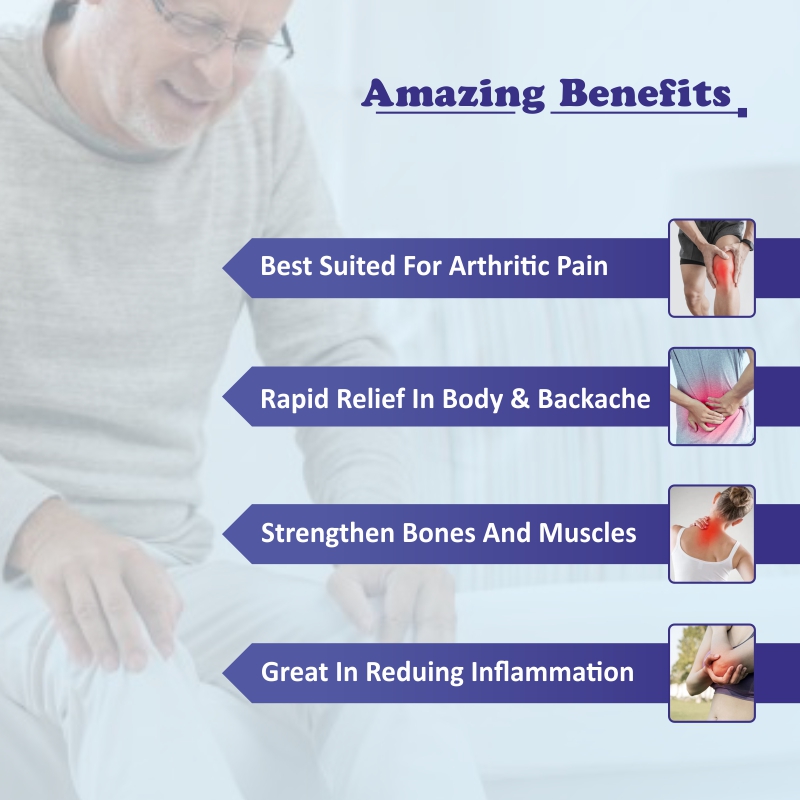 Quick relief from muscles stiffness : The oil is effective in reducing muscles stiifness, allowing for comfortable mobility and flexibility.