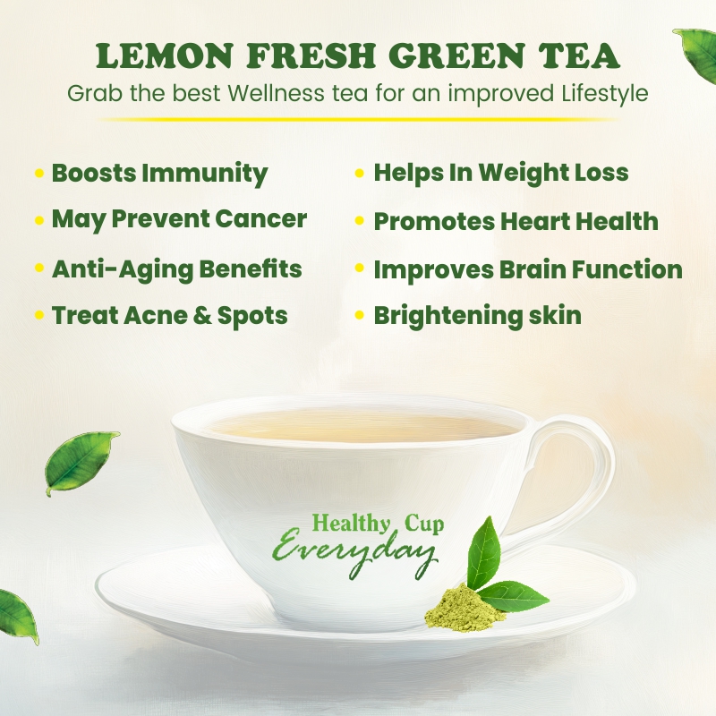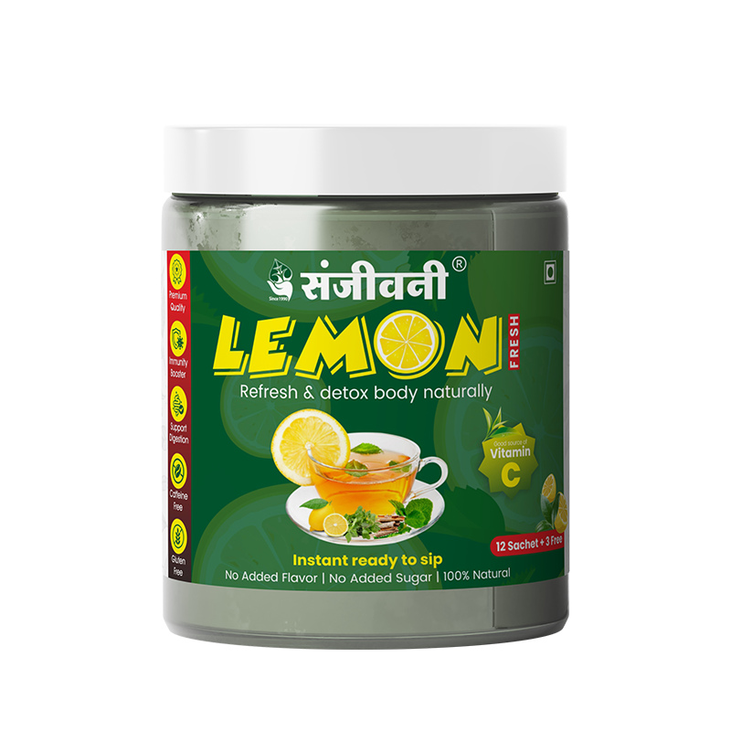 Sanjeevani Lemon fresh brings you green tea that offers a delicious taste with protective effects against cardiovascular diseases. This green tea is zero in calories and rich in antioxidants that deliver a delightful, lemony, and bitterness-free taste that everyone loves. Also helps control blood sugar and has a calming effect on the body and mind while eliminating toxins. With 15 tea bags, each providing a 2 cups, Instant ready to mix so enjoy anywhere that makes your full tummy feel light.